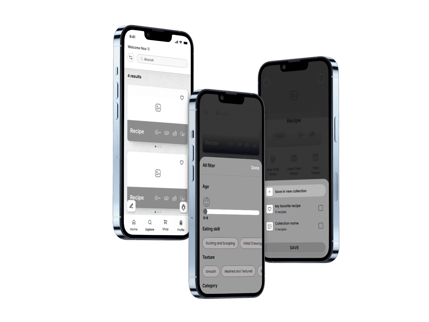 I designed a centralized and user-friendly platform that includes all the recipes in one place – with clear navigation and filters by age and developmental stage, to provide an efficient and pleasant user experience for parents.